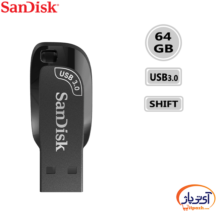فلش مموری USB3.0 سن دیسک 64 گیگابایت مدل SanDisk ULTRA SHIFT CZ410