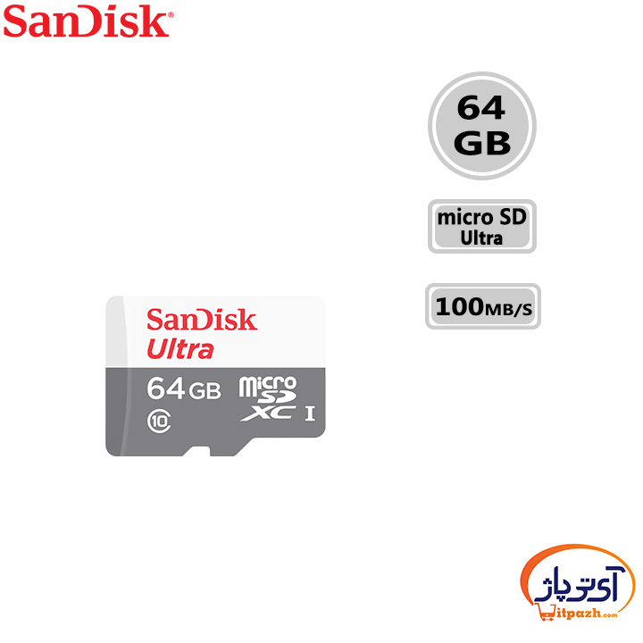 کارت حافظه SDXC UHS-I ظرفیت 64 گیگابایت سن دیسک سرعت 100MB/s