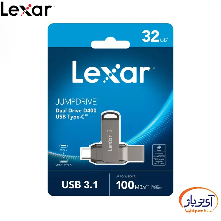 فلش مموری Type-C USB3.1 لکسار 32 گیگابایت D400