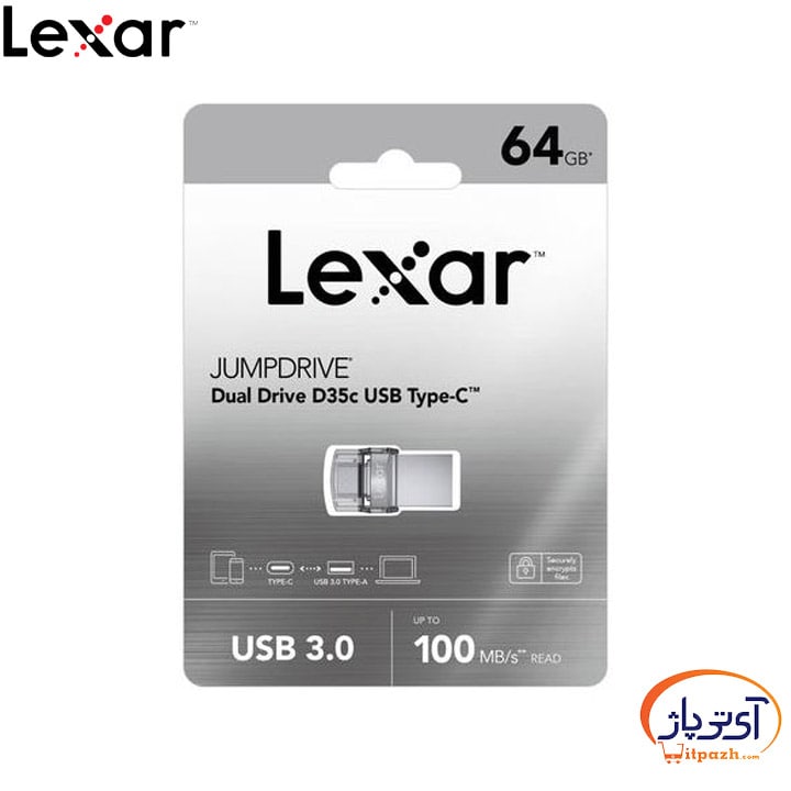 فلش مموری USB3.0 لکسار 64 گیگابایت مدل LEXAR D35c Type C