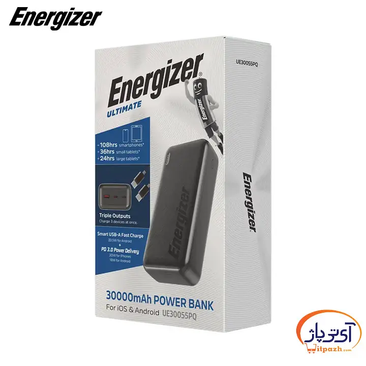 نمایندگی پاوربانک انرجایزر UE30055PQ 22.5W PD ظرفیت 30000mAh
