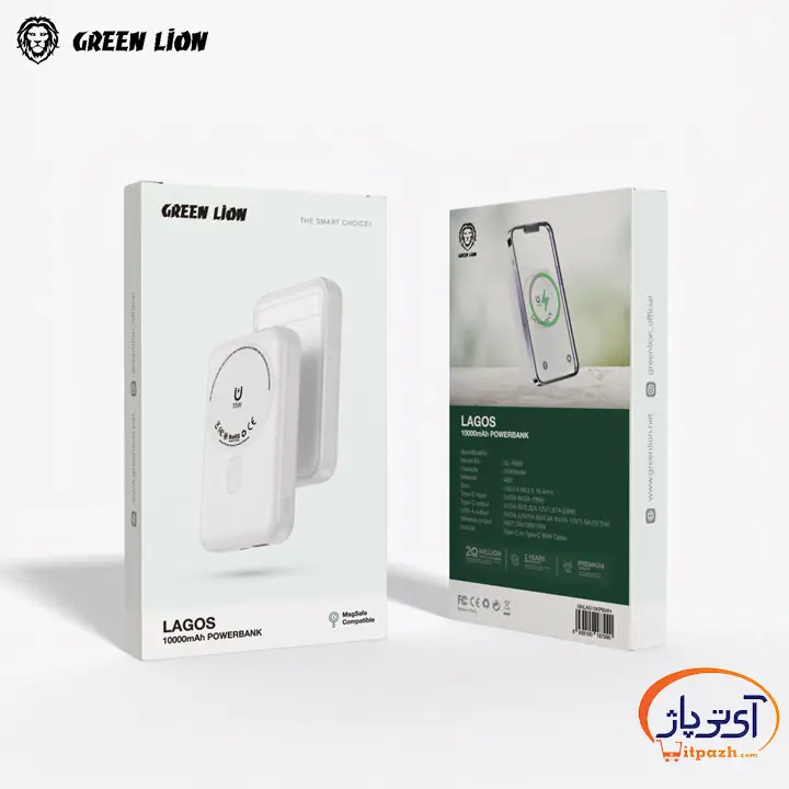 پاوربانک گرین لاین Lagos MagSafe ظرفیت 10000 میلی آمپر