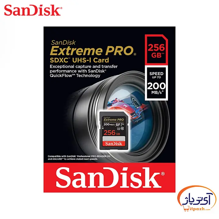 کارت حافظه SDXC سن دیسک Extreme Pro V30 ظرفیت 256 گیگابایت سرعت 200mbps